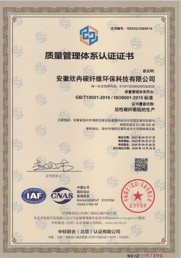 新质量体系认证证书