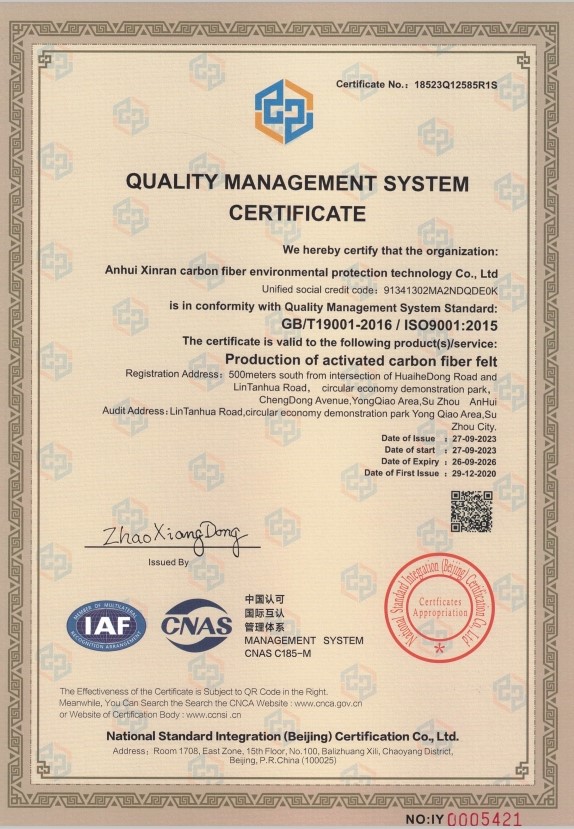 质量管理体系符合标准: GB/T19001-2016 IDT IS09001 : 2015